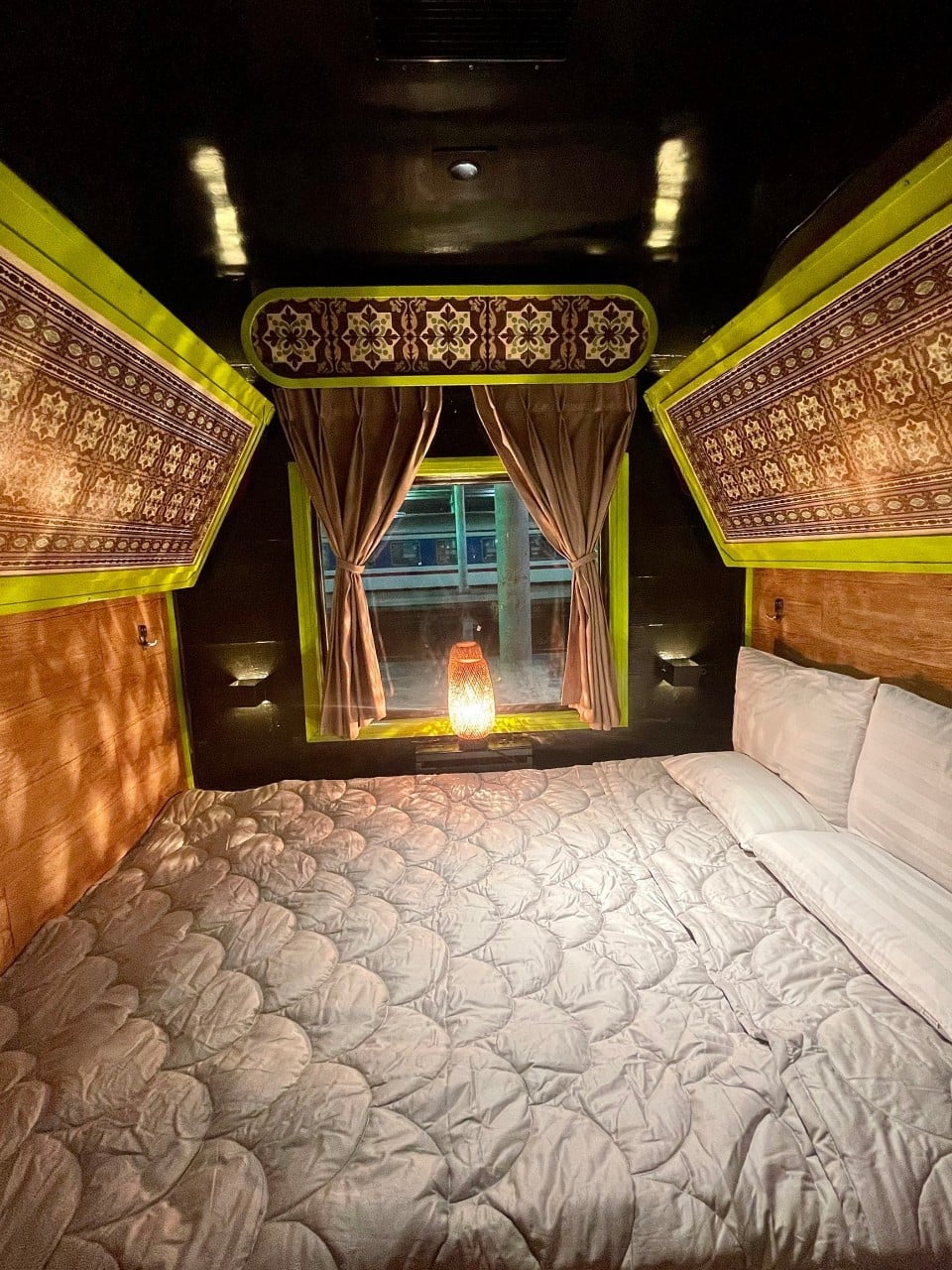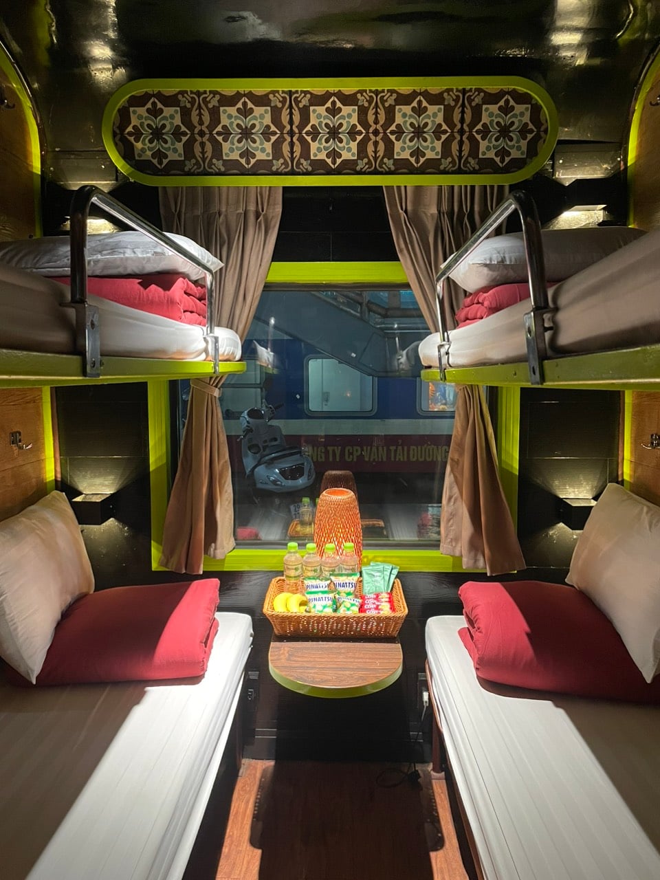 Đặc biệt, vị trí giường được sắp xếp hợp lý ở hai đầu toa xe, giúp giảm rung lắc và tạo sự riêng tư tối đa. Tất cả các khoang đều có điều hòa trung tâm, đèn đọc sách cá nhân, hộc để đồ nhỏ, rèm cửa riêng biệt và ổ cắm sạc điện thoại tiện lợi.