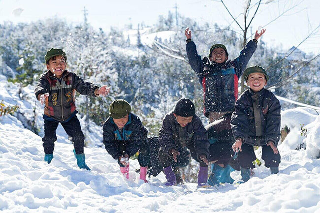 Những đứa trẻ nô đùa không quan tâm đến mùa đông Sapa lạnh giá