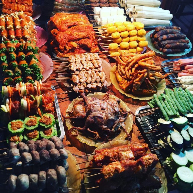 Đồ nướng: Ít có nơi nào là thực đơn các món nướng lại phong phú như ở Sapa. Không chỉ có thịt bò, thịt lợn hay xúc xích, người ta còn xiên cả cá, lòng, dạ dày, khoai lang, rau củ quả để nướng. Tùy từng loại mỗi xiên có giá tiền khác nhau, trung bình khoảng 10.000 đồng. Cái thú vị nhất của món này là thực khách chọn xiên rồi chờ chủ quán nướng chín, đến khi thưởng thức nóng hôi hổi, thơm phức.