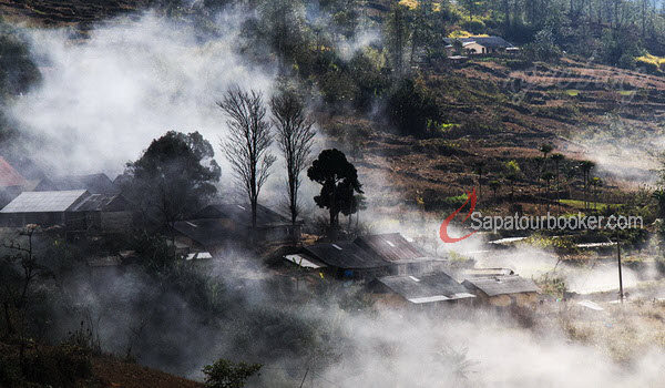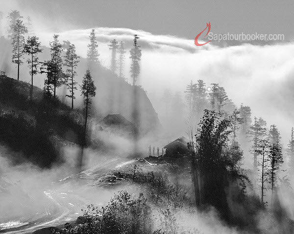 Bên cạnh tuyết, sương mờ vào sáng sớm cũng là một đặc sản của Sapa mùa đông. Từ các điểm cao như đỉnh Fansipan, đèo Ô Quy Hồ hay núi Hàm Rồng, bạn có thể phóng tầm mắt ngắm nhìn thị trấn mờ ảo trong màn sương trắng dày đặc. Khi ánh mặt trời buổi sáng bắt đầu ló dạng, những tia nắng vàng chiếu xuyên qua lớp sương, làm nổi bật vẻ đẹp bình yên và thơ mộng.